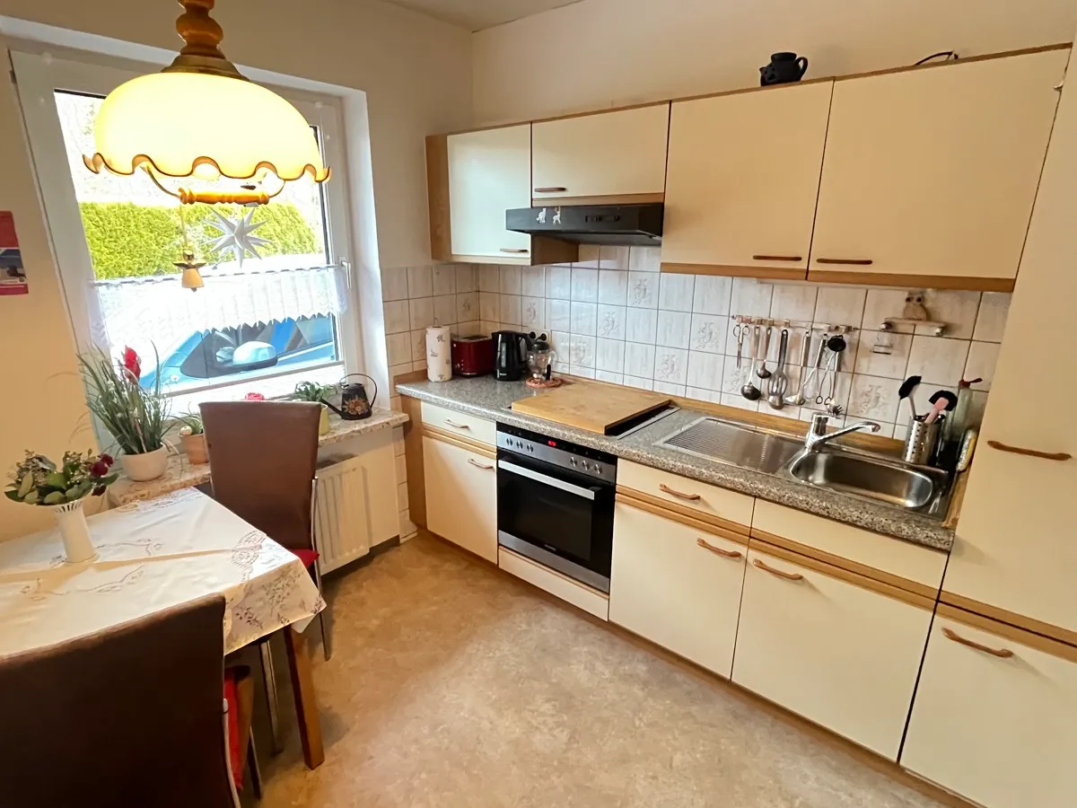 Die Wohnung umfasst ein Schlafzimmer, ein Wohnzimmer, eine gemütliche Küche mit Einbauküche und einem Essbereich, ein Bad mit begehbarer Dusche sowie einen Hauswirtschaftsraum.