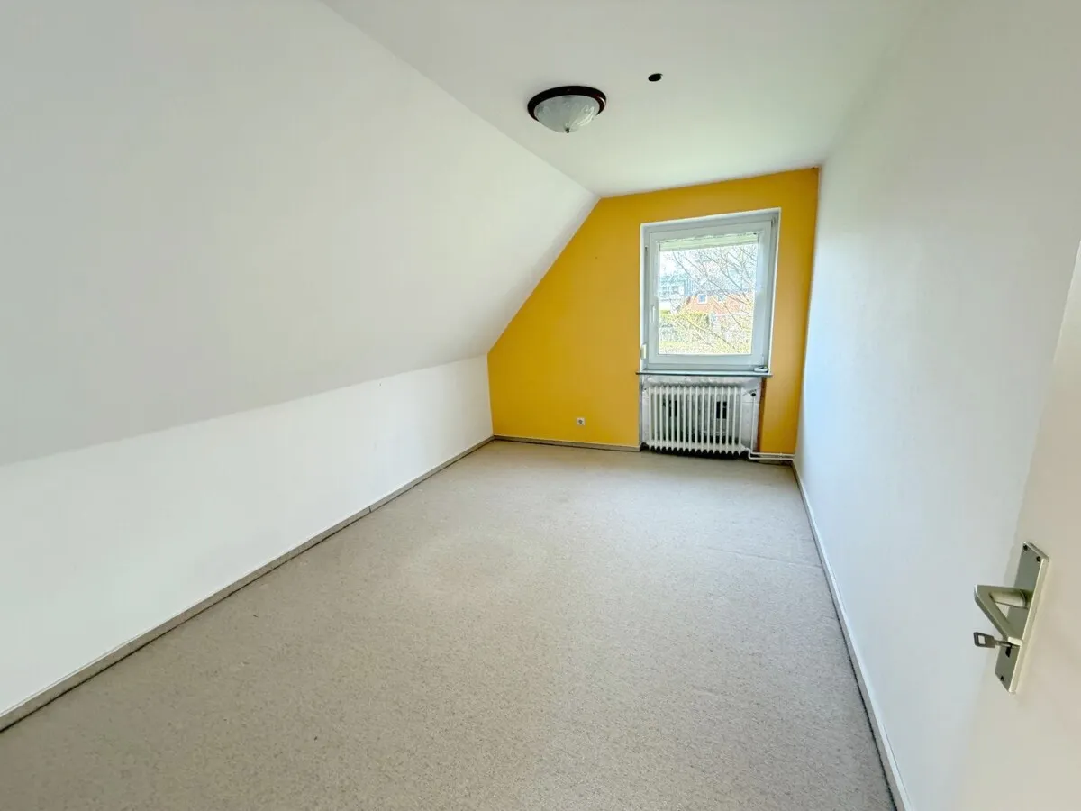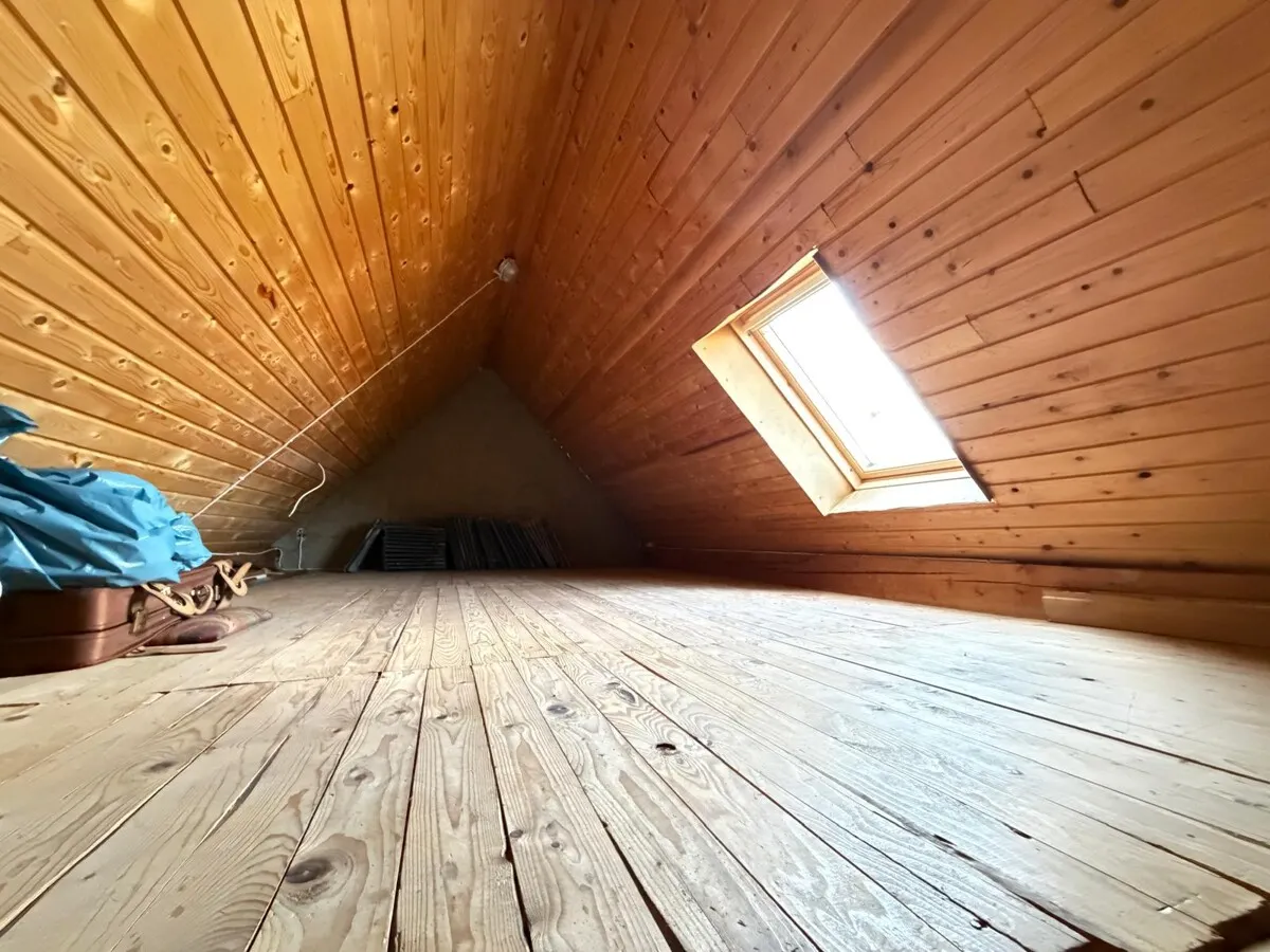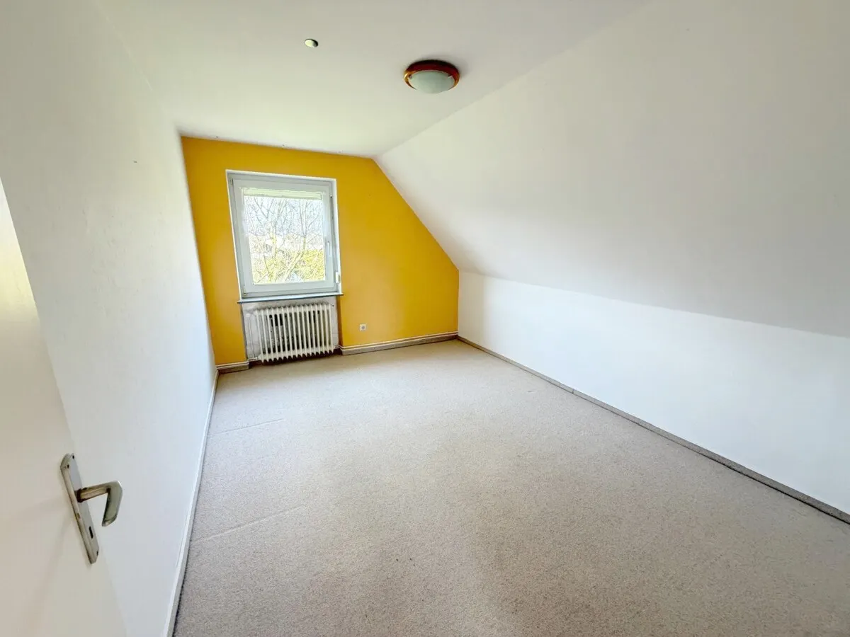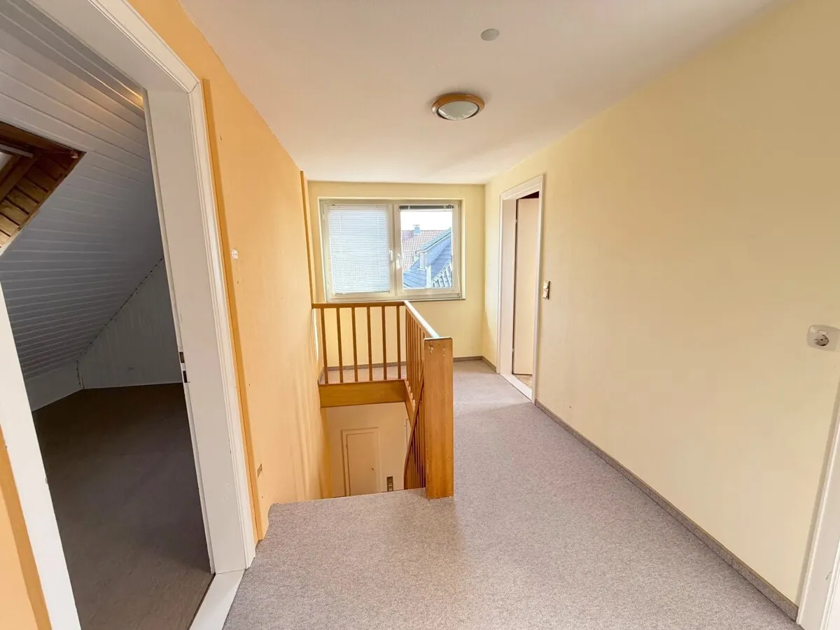 Das Dachgeschoss erreichen Sie über eine Holztreppe. Hier erwarten Sie drei weitere Schlafzimmer, ein Bad mit Dusche und ein WC.
