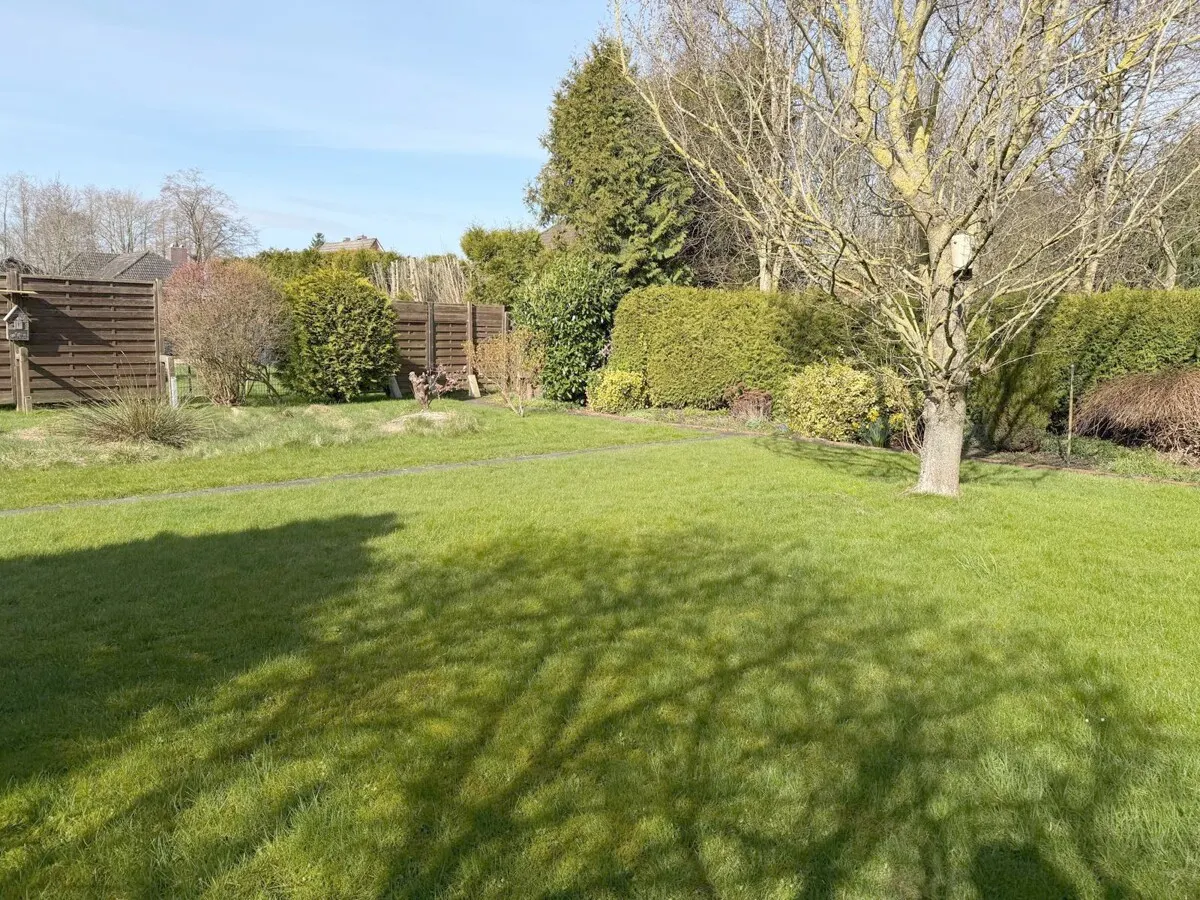 Ein pflegeleicht angelegter Garten mit überdachter Terrasse lädt zum gemütlichen Verweilen ein.