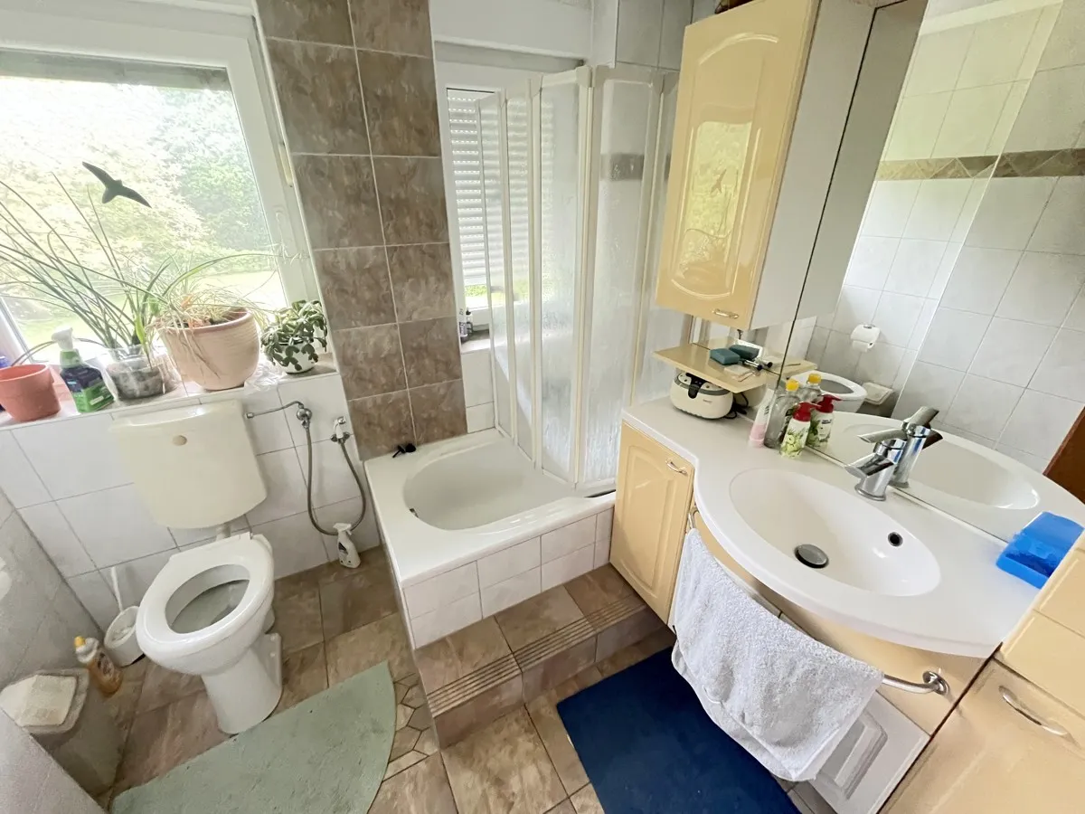 2- und 3-fach-ISO-KS-Fenster, teilw. Roll-Läden, Heizung und Warmwasser mit 2 Brennwert-Gastherme, Photovoltaikanlage möglich, teilw. Fußbodenerwärmung, Badezimmer gefliest, Decken und Wände tapeziert, teilweise holzvertäfelt, Fußböden mit Fliesen, Laminat, Teppich, Innentüren in Buche und Eiche, Holztreppe, Carport, 2 Garagen, mehrere PKW-Einstellplätze.
