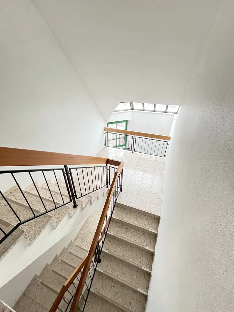Diese helle und geräumige 3-Zimmer-Dachgeschosswohnung verfügt über eine Küche mit Einbauküche und eine große Terrasse die von der Küche und vom Wohnzimmer begehbar ist.